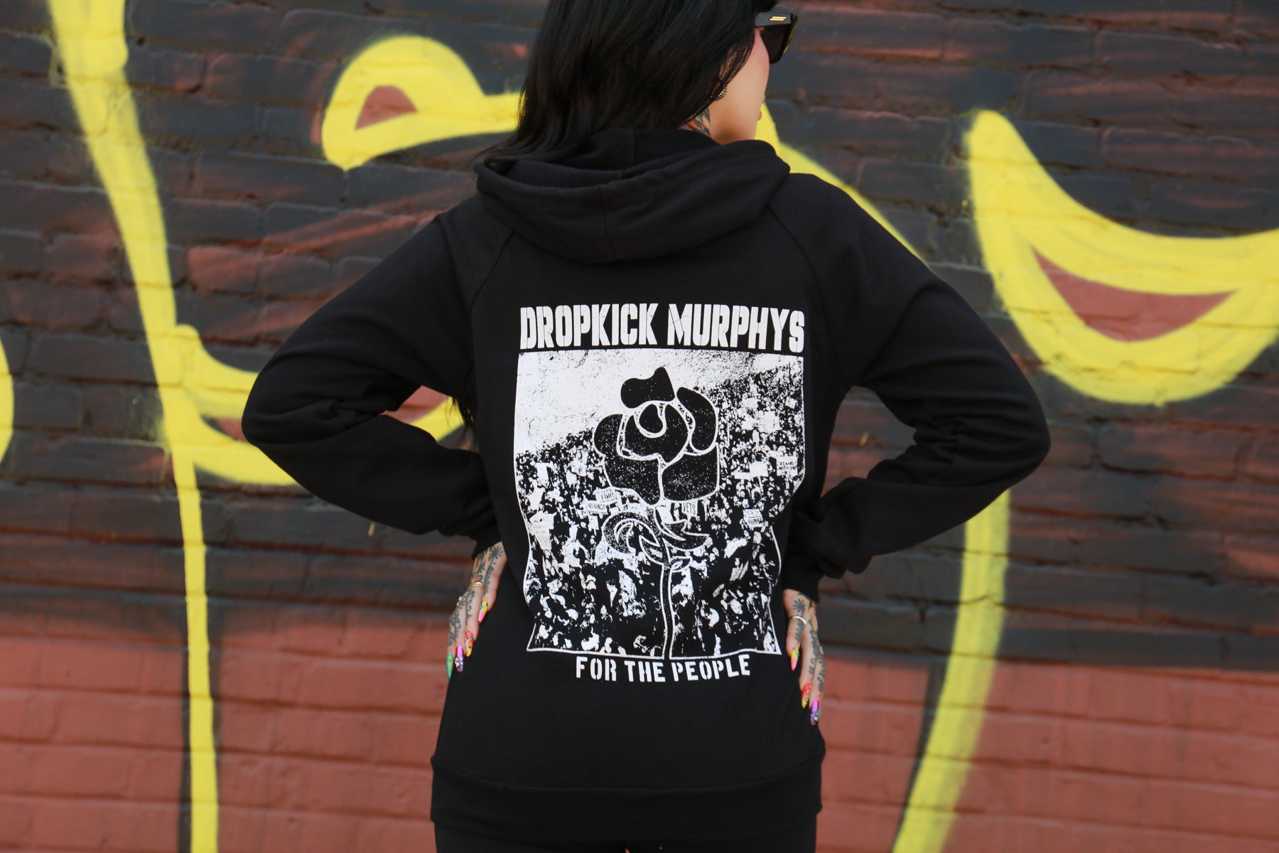 The Dropkick Murphys For The People design, printed on a comfortable, standard-fitting black zip up hoodie.
